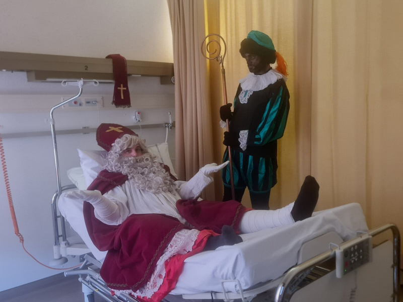 Zwarte Piet aan de zijde van Sinterklaas in het regionaal ziekenhuis. 06/12/2022